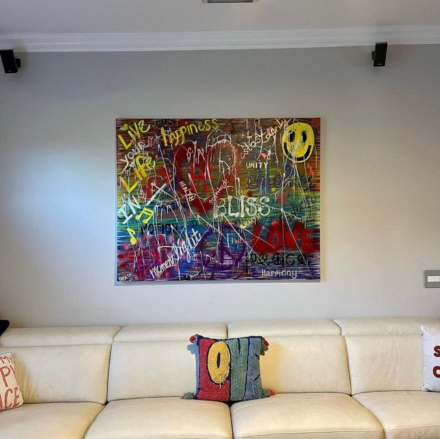 - Acrylic, spray, glitter, varnished